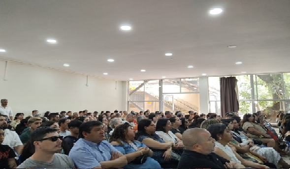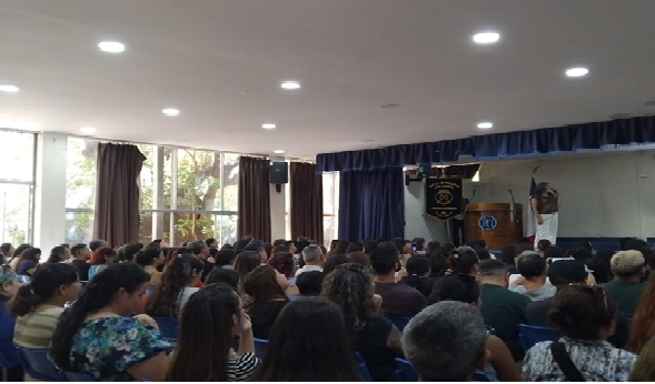 Mientras las pruebas se llevaban a cabo, los apoderados participaron en una reunión en la Sala Nelly Parra, donde el equipo de gestión presentó los principales lineamientos del establecimiento. En esta instancia se explicó qué significa formar parte del Liceo 7, tanto desde el rol del estudiantado como desde el acompañamiento de las familias. Además, se realizó una breve presentación de los distintos estamentos de la comunidad educativa, incluyendo al Centro de Estudiantes, Centro de Padres, Madres y Apoderados y funcionarios.