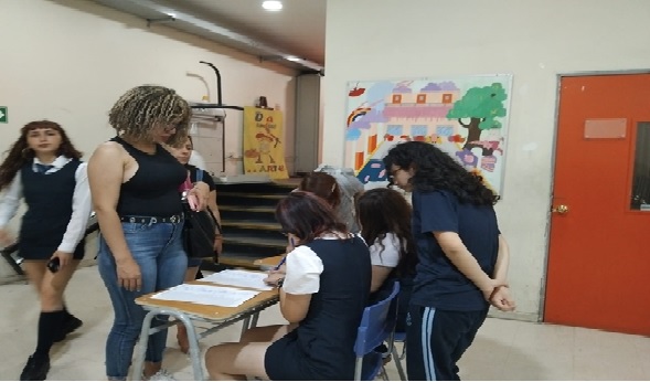 Tras la primera evaluación, el estudiantado tuvo un breve receso para luego continuar con una segunda prueba. De manera paralela, las y los estudiantes de Segundo y Tercero A colaboraron con los funcionarios, para que los apoderados recorrieran por las principales dependencias del liceo. Durante este trayecto se explicó el valor y significado de espacios emblemáticos como el Ombú, la Sala Nelly Parra, la Sala de Música, la “Pecera”, el pasillo hacia JUNAEB y otros lugares que forman parte de la identidad y la vida cotidiana del Liceo 7.